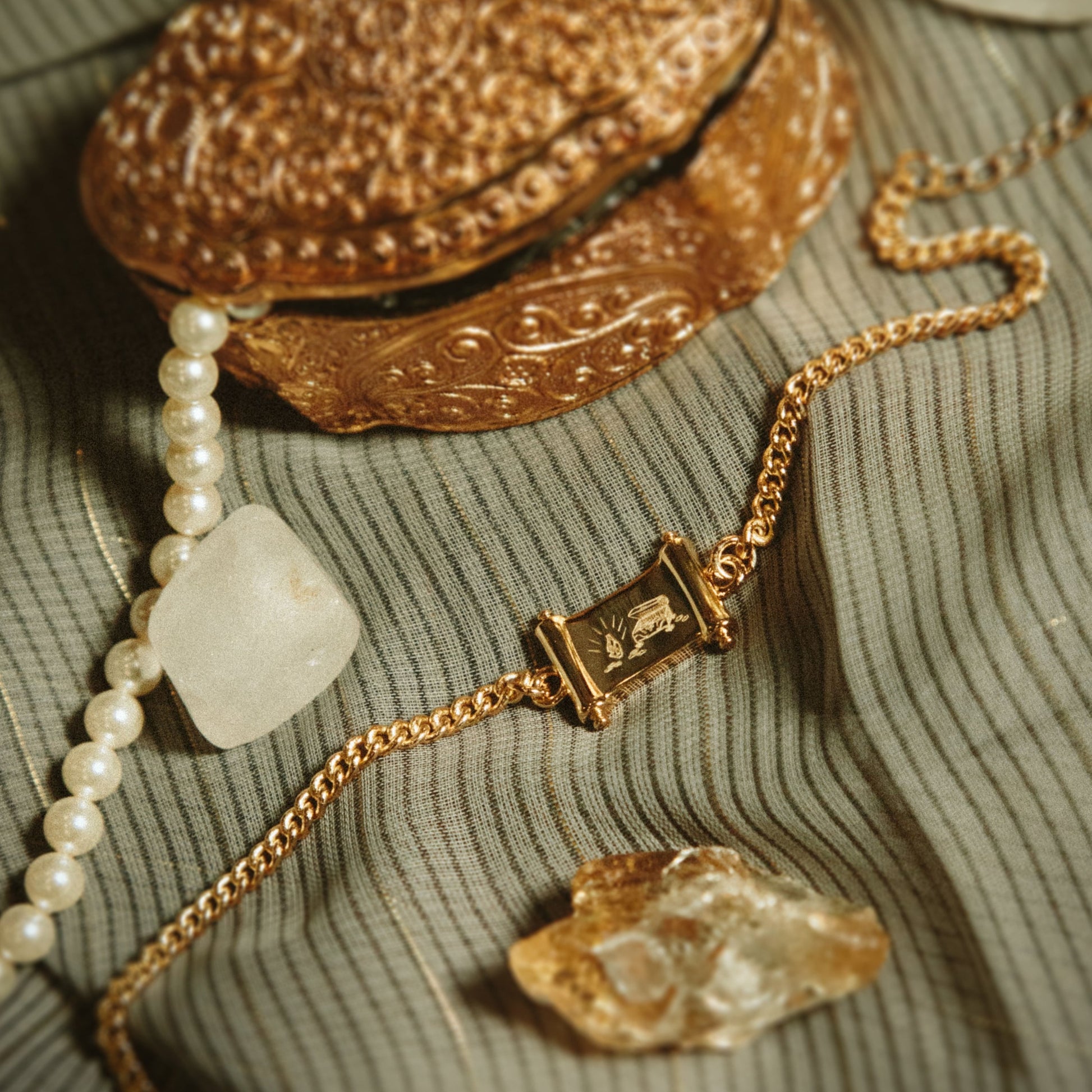 ⟡ 鍍金黃銅部分請盡量避免碰到水或化學液體,請勿佩戴至有硫磺溫泉等地區。