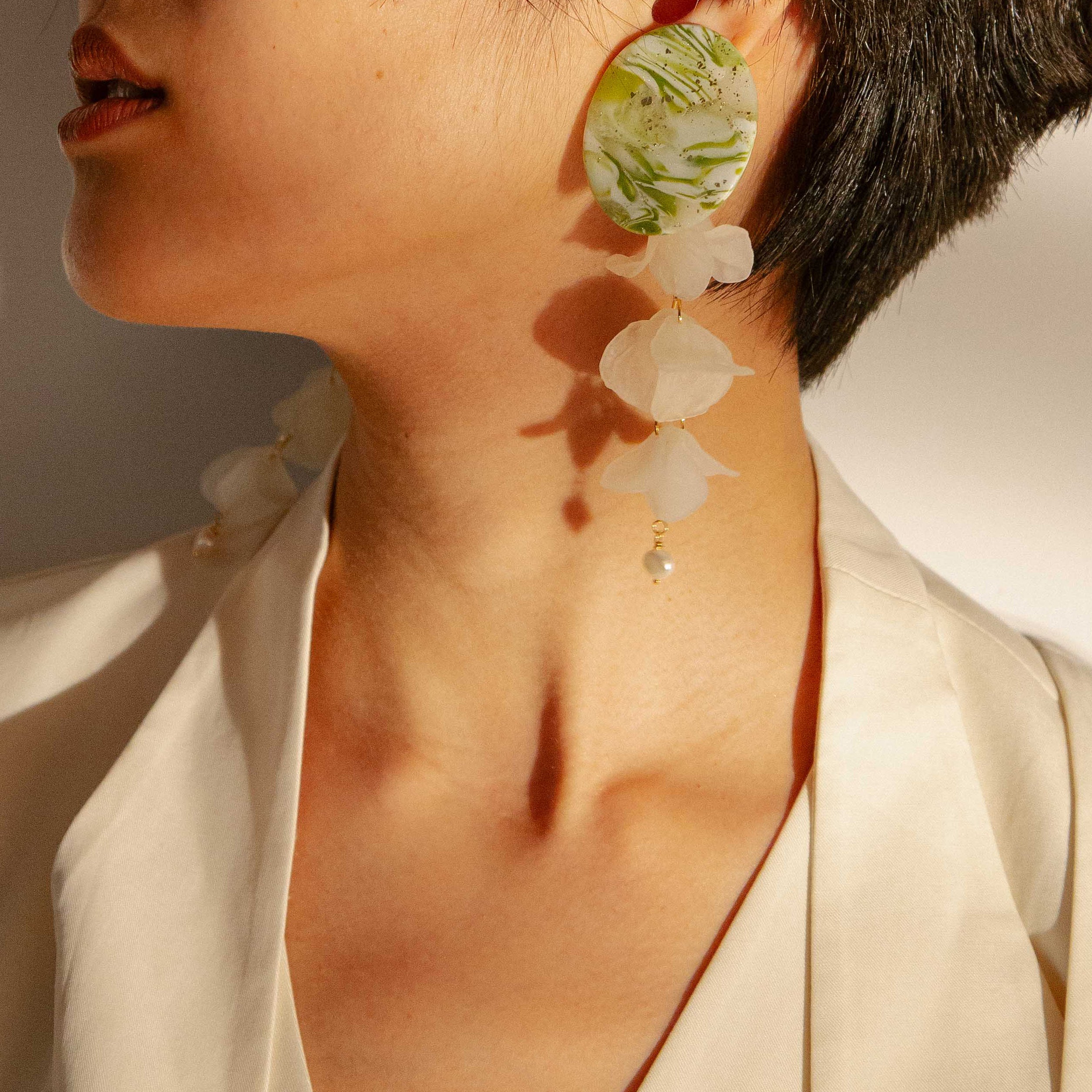 (套組)Blooming Tides II Jadeite Large 大穗生浪花耳飾 - 翠玉