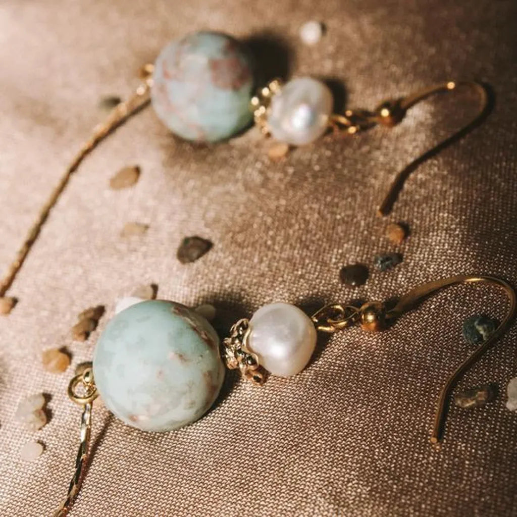 - 蛇紋石/太陽石/淡水珍珠/壓克力/黃銅鍍金
