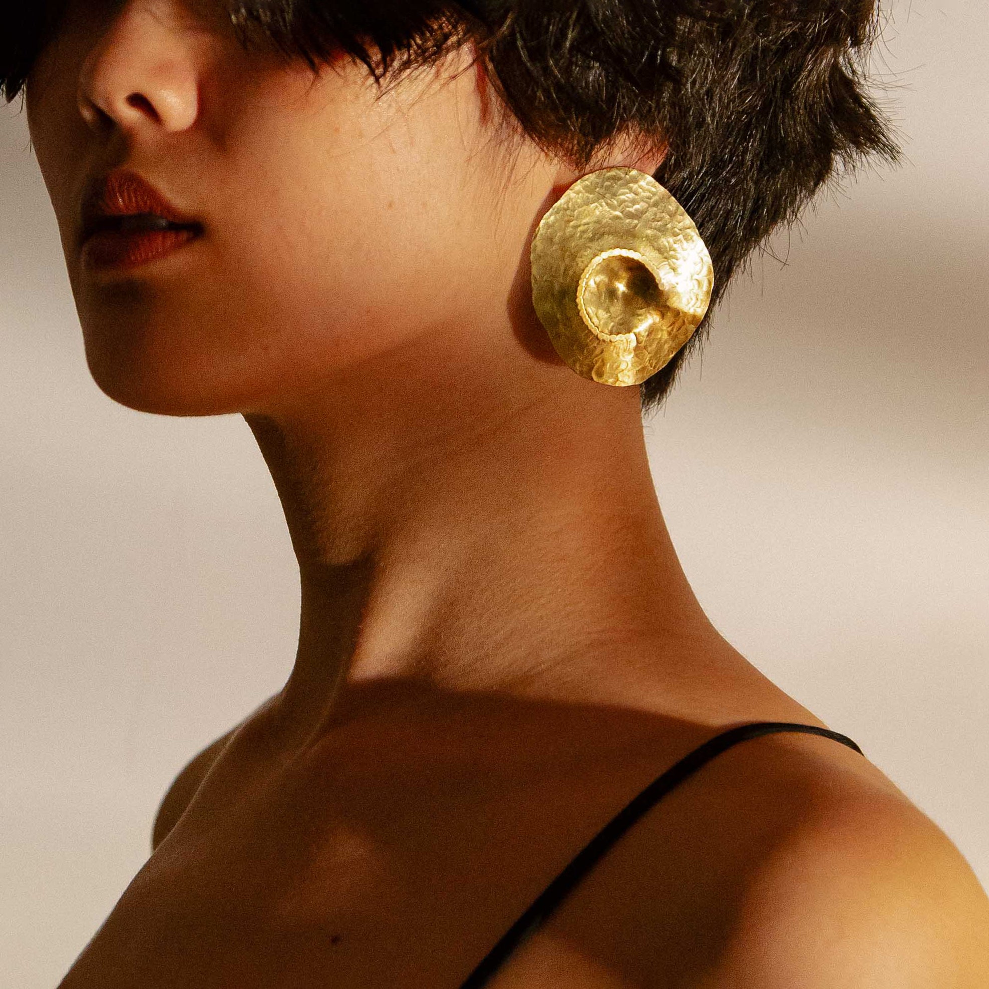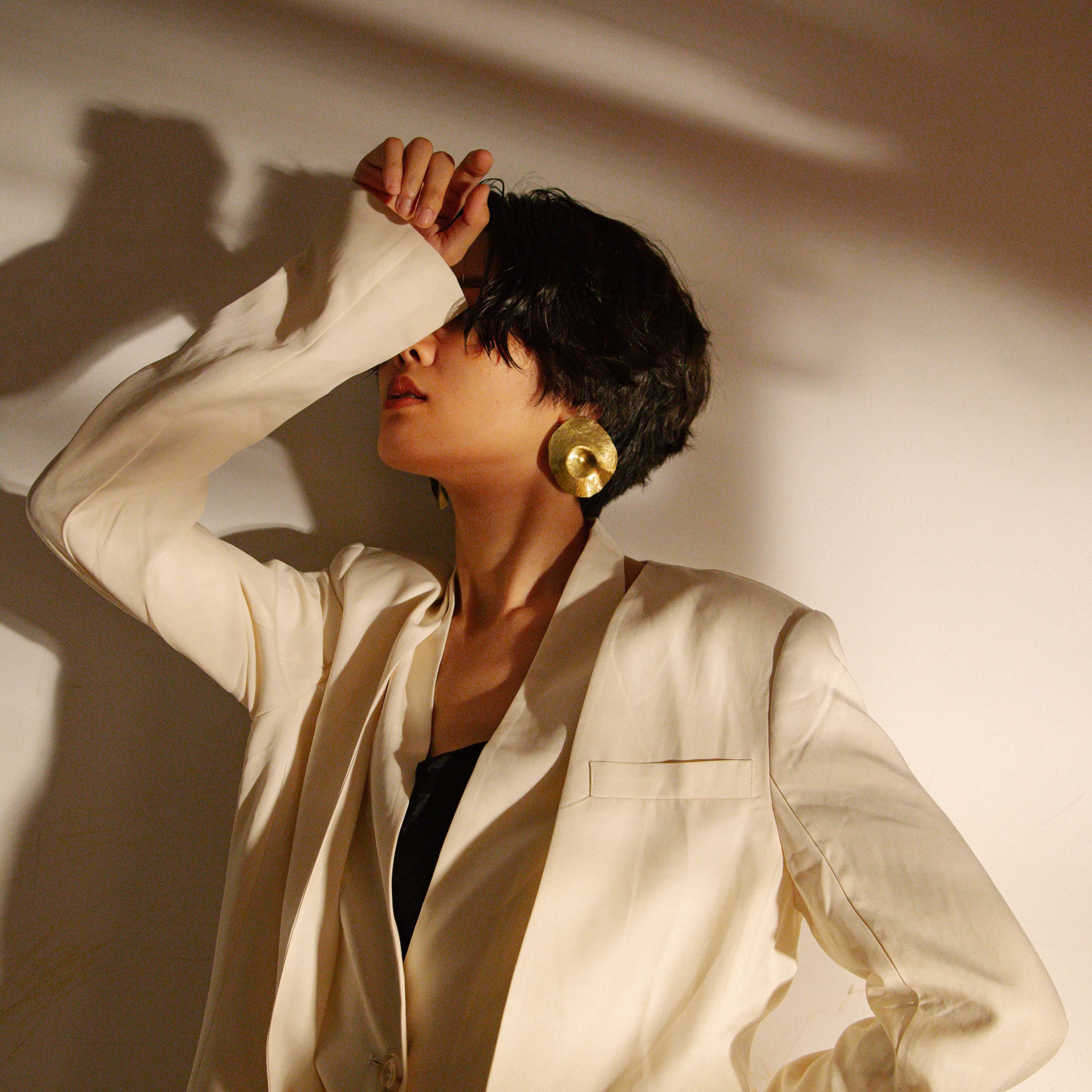 看似厚重卻很輕巧,每片皆在台灣工作室手工裁切後緞敲處理而成,是你最有力量也最溫暖的 Statement Jewellery。
