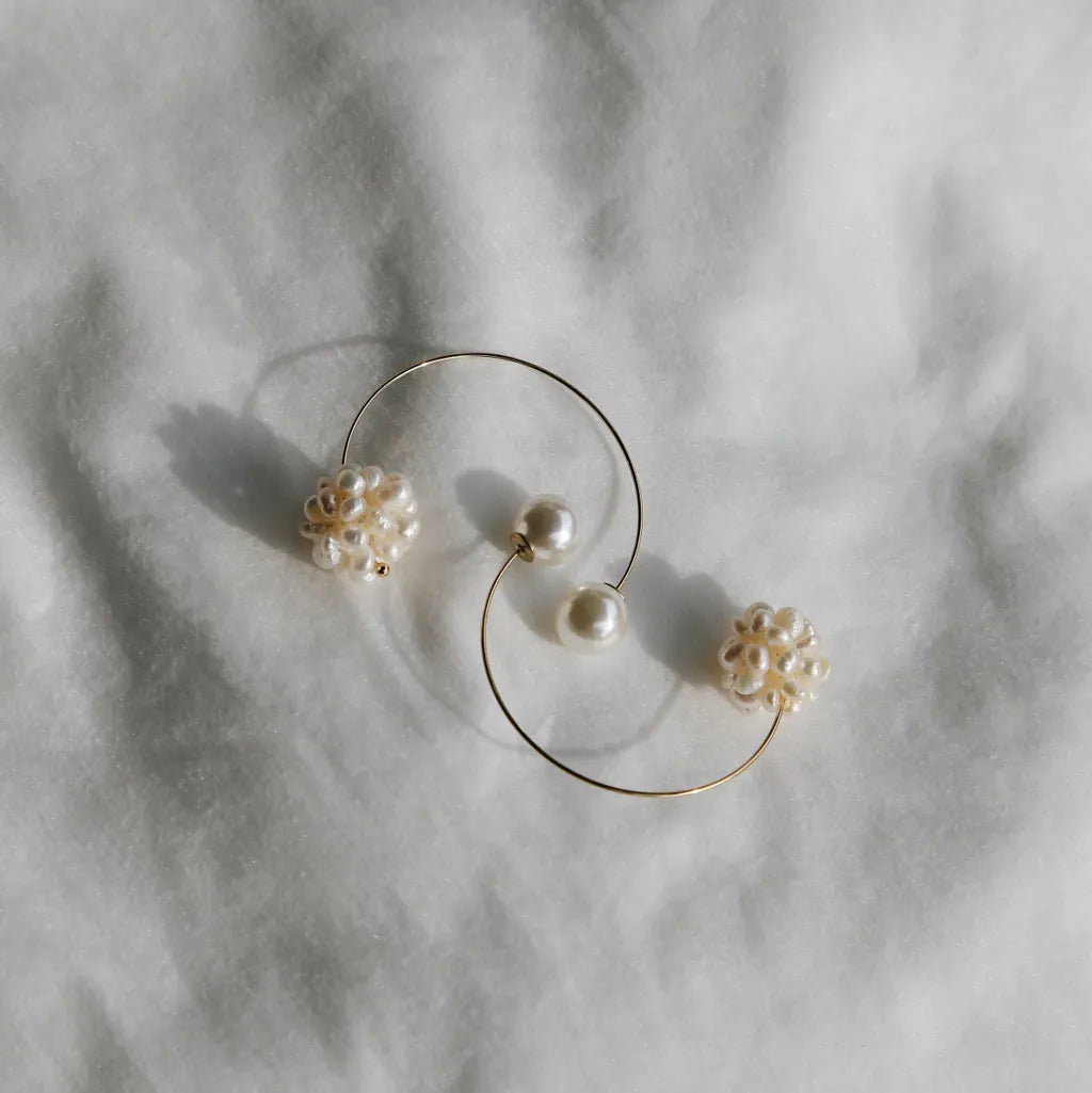 Iri Halo 珍珠雪花光環耳飾-銀色