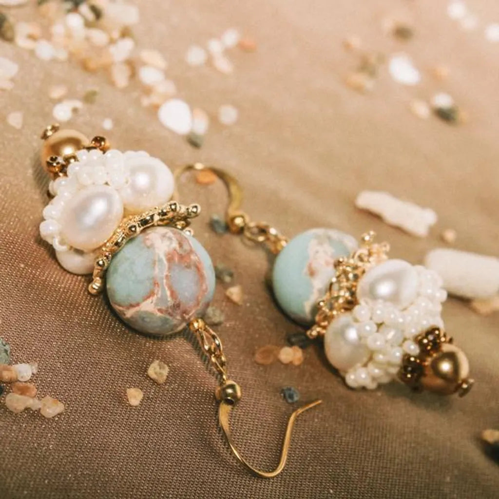 ⟡ 珍珠、貝殼、天然石等素材,花色與形狀沒辦法完全相同,出貨時我們會盡量搭配成對寄出,些微花色與形狀差距不屬於瑕疵範疇。