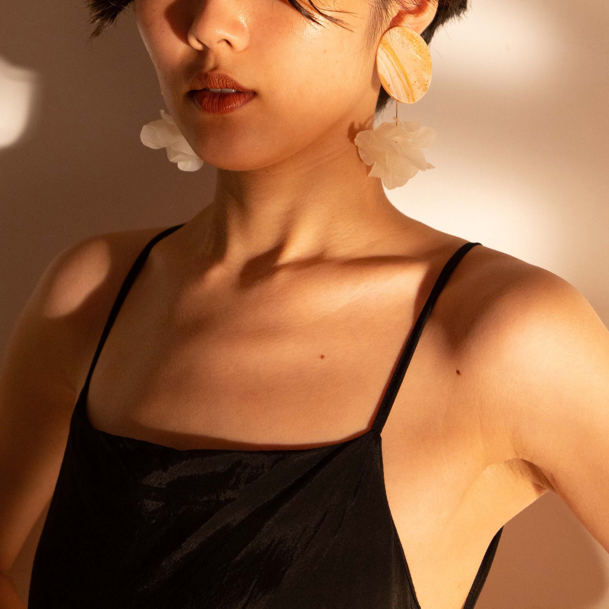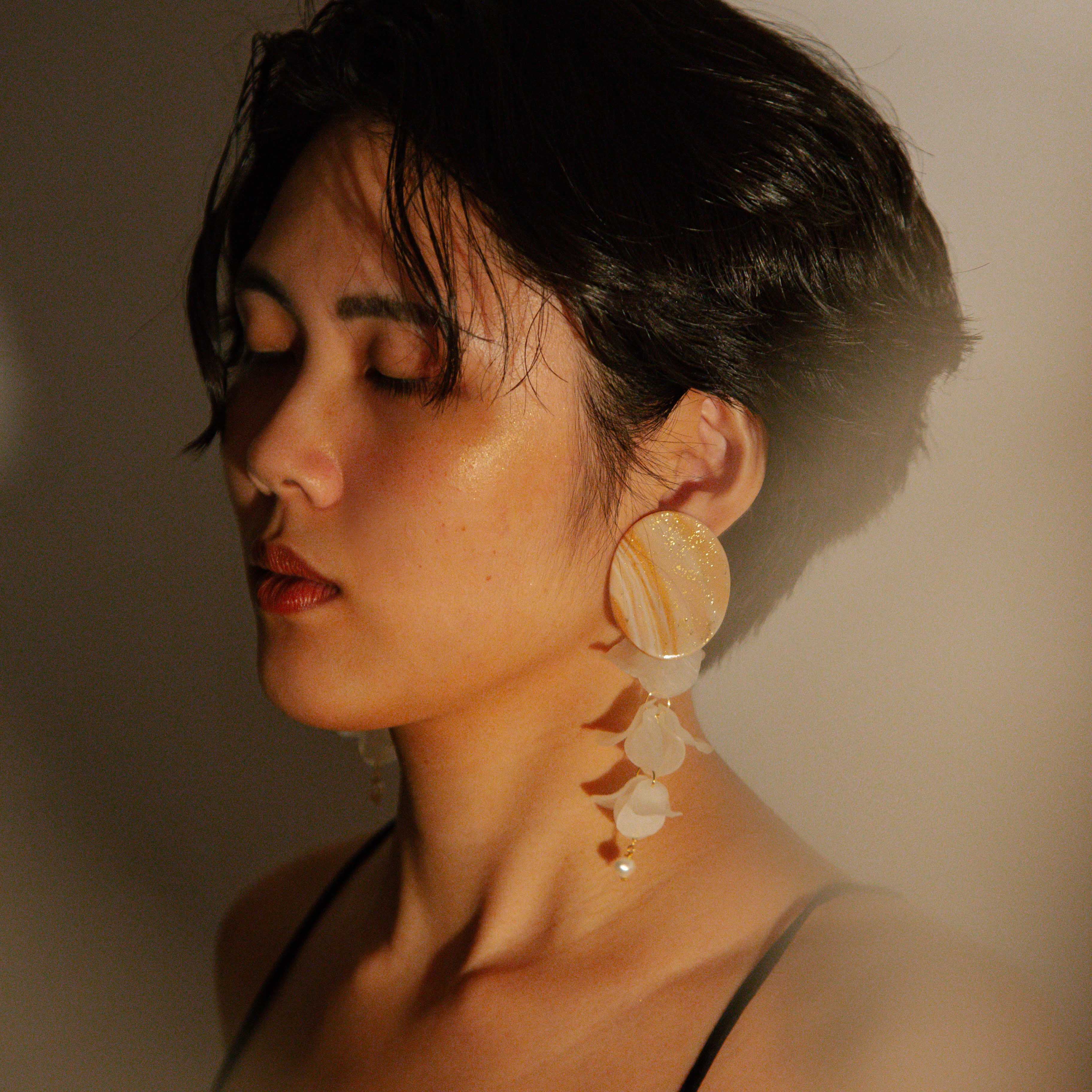 如同結穗的形體,靈感來自於逡巡於撲岸潮汐的細碎扇貝們。上下可拆卸的扣環設計,繁複與簡約一應俱全,無論日常或派對都能兼顧。復刻2018年第一代瑪瑙 Blooming Tides,上部原本沉重的天然石改用手工混色烤製而成的歐洲軟陶圓片,垂墜部的手捏花瓣也更加活潑立體,整體重量更是減輕50%,一對僅有30g,讓因為第一代重量困擾不已的新舊粉絲能有更舒適的選擇!